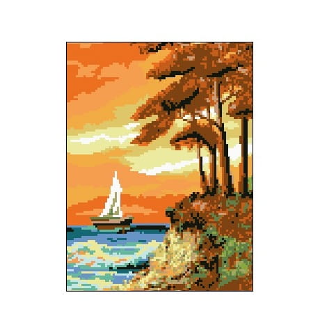 Rozmiar wzoru: 96 na 120 krzyżyków, 18 kolorów.